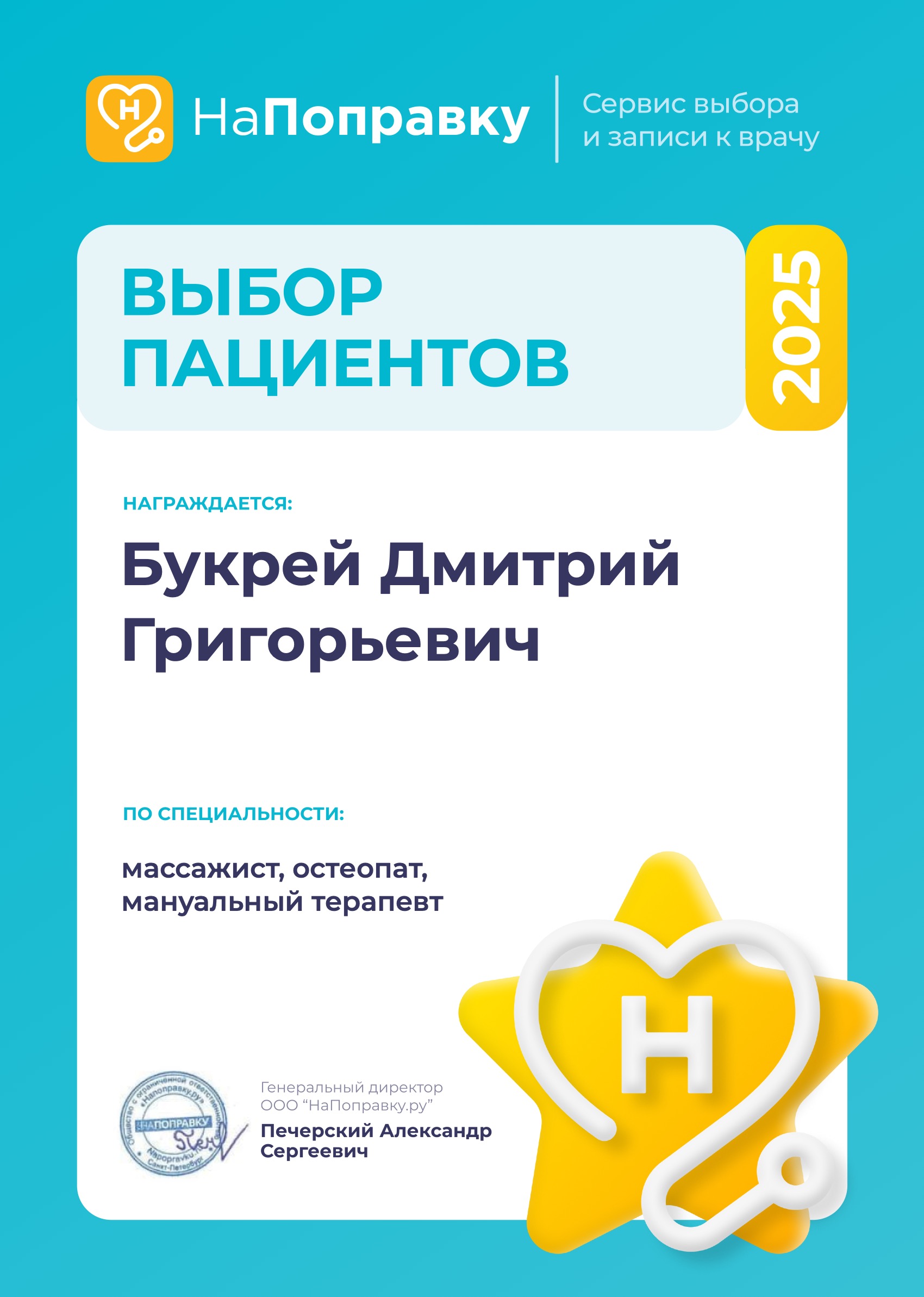 Меня зовут Дмитрий Григорьевич Букрей, я рефлексотерапевт и мануальный терапевт. Когда я готовился к поступлению в медицинский институт, меня вдохновлял пример друга, который шёл тем же путём. Родители поддержали моё решение, и интерес к анатомии, биологии человека сыграл важную роль. С тех пор медицина стала не просто работой, а делом жизни.