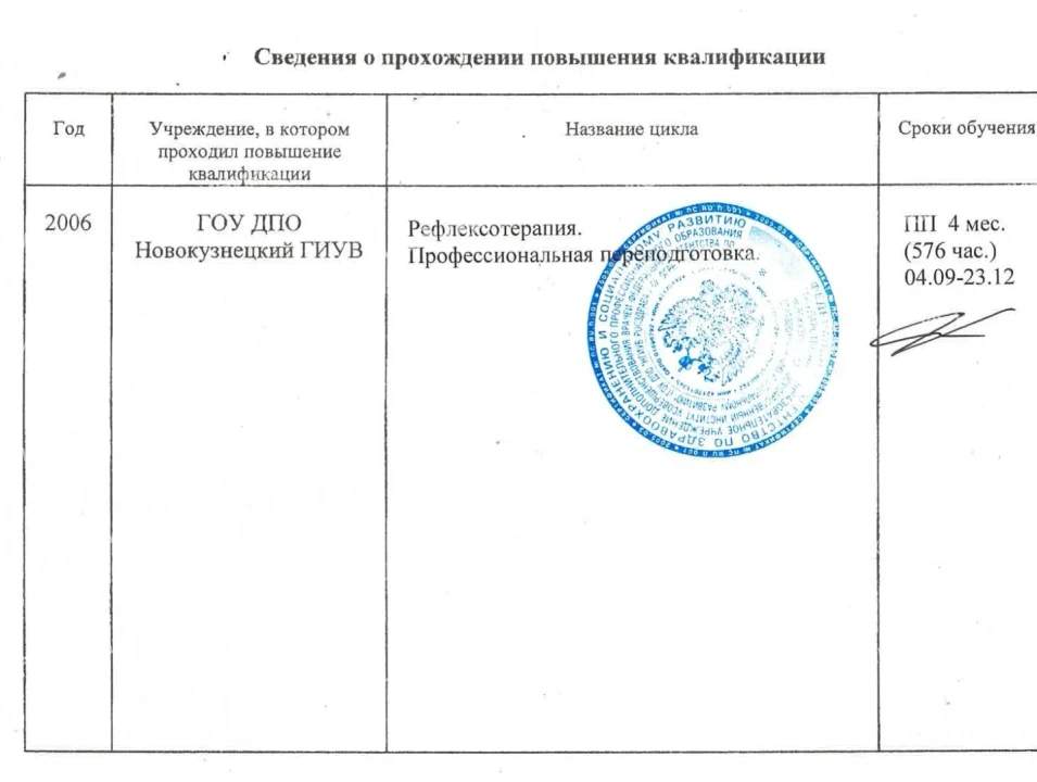 - Опыт и профессионализм: Стаж работы более 23 лет в области неврологии и рефлексотерапии.
