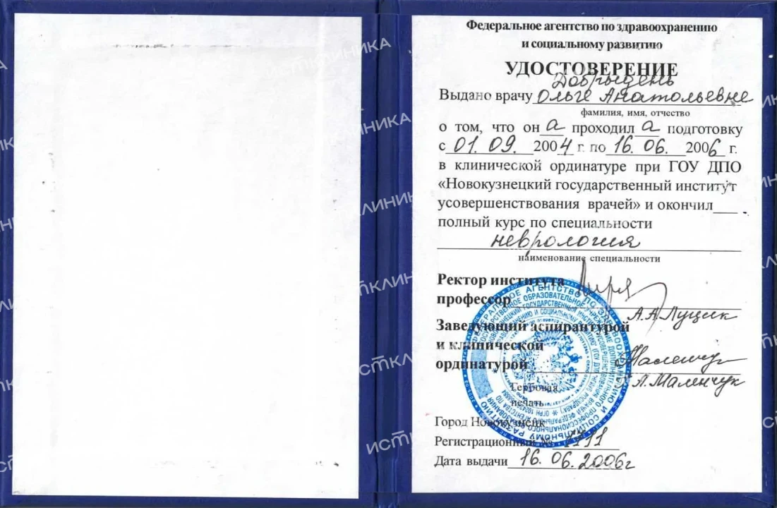 Меня зовут Ольга Анатольевна Добрыдень. Мой выбор профессии определился ещё в три года, когда я пришла в больницу к маме в отделение неврологии. У неё были сильные боли из-за грыжи диска, и она не могла встать. Тогда я сказала: «Мама, не переживай, когда я вырасту, я стану врачом и вылечу тебя». Эти слова стали отправной точкой моего профессионального пути.