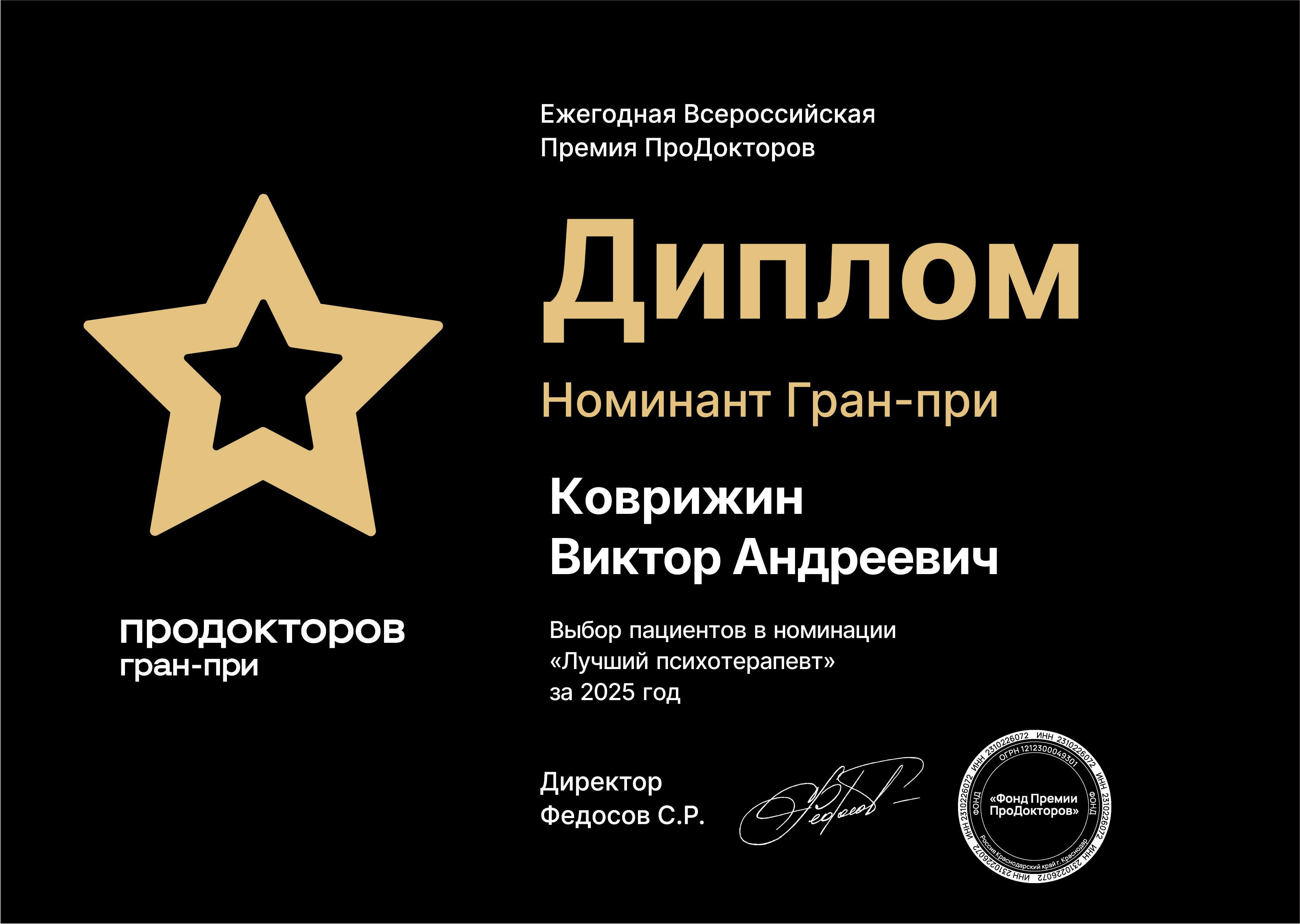 Меня зовут Виктор Андреевич Коврижин. С детства я понимал, что хочу посвятить свою жизнь помощи детям. Желание поддерживать молодых людей в трудные моменты привело меня к профессии психотерапевта.