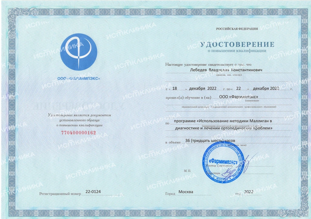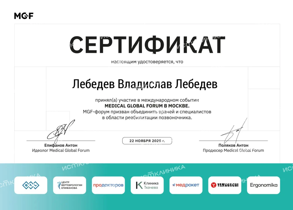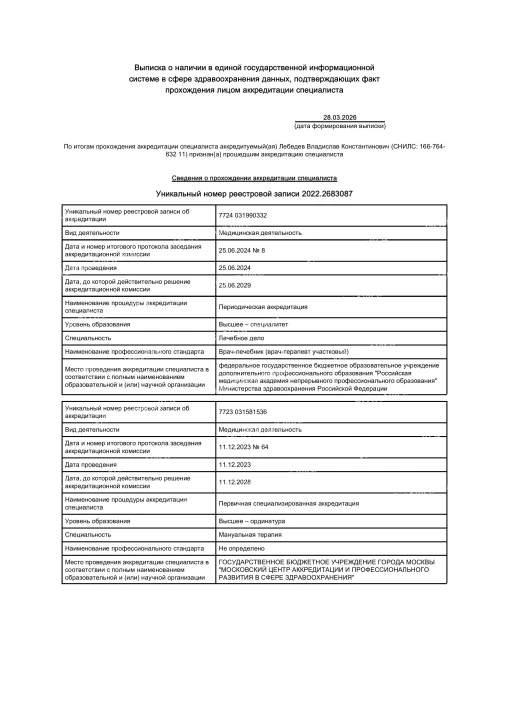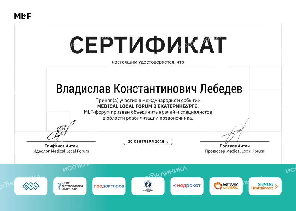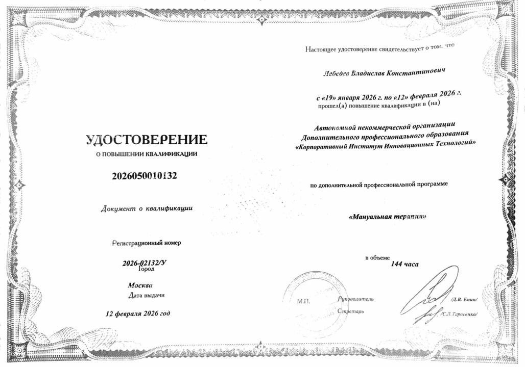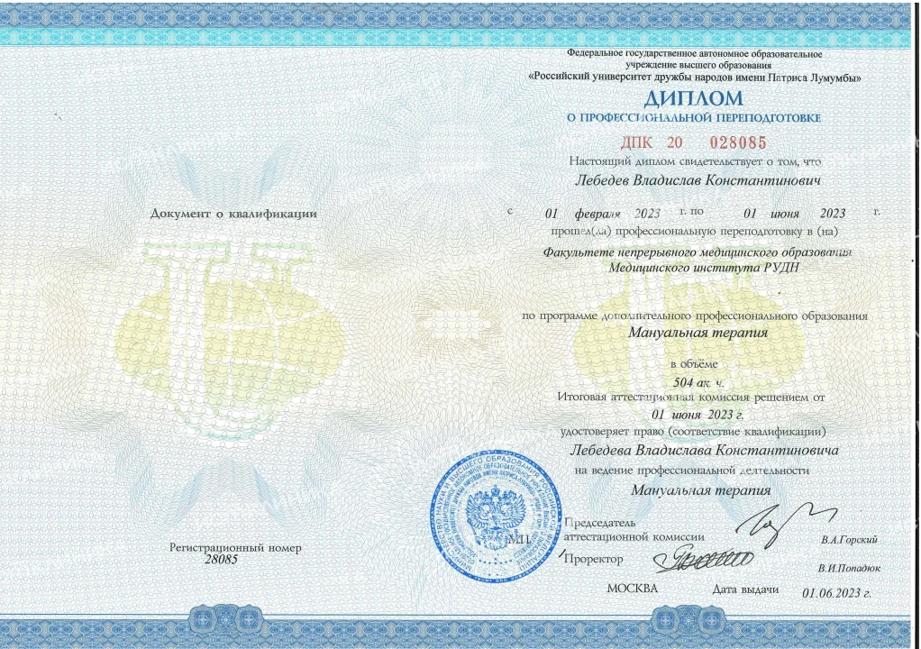 Меня зовут Владислав Константинович Лебедев, я врач мануальной терапии.