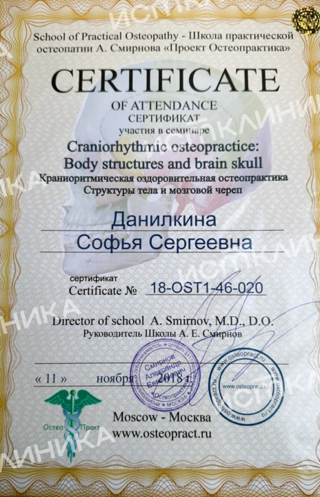 Здравствуйте! Я нашла клинику через интернет - привлекли хорошие отзывы. Обратилась к неврологу Долинке Елене Владимировне с проблемами в шейном отделе: ранее у меня было две операции, и требовалась реабилитация. Сейчас прохожу курс остеопатии, массажа и лечебной физкультуры, в том числе у остеопата Софьи Сергеевны Лев. Уже есть положительные результаты: прошли головные боли, исчезла заложенность ушей, общее самочувствие стало лучше. Надеюсь, что с каждым этапом лечения динамика будет только улучшаться.